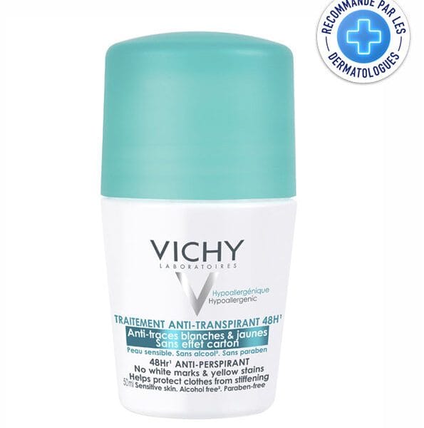 VICHY DÉODORANT TRAITEMENT ANTI-TRANSPIRANT 48H – ANTI-TRACES JAUNES ET BLANCHES – 50 ML