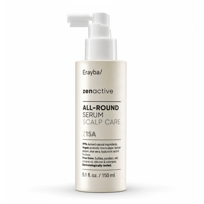 Le Erayba Zenactive ALL-Round Serum Scalp Care est un sérum complet pour le soin du cuir chevelu et des cheveux. Sa formule légère et concentrée nourrit, hydrate et stimule le cuir chevelu tout en renforçant la fibre capillaire. Il aide à prévenir la chute des cheveux, apporte vitalité et équilibre, et laisse la chevelure douce, brillante et pleine de santé.