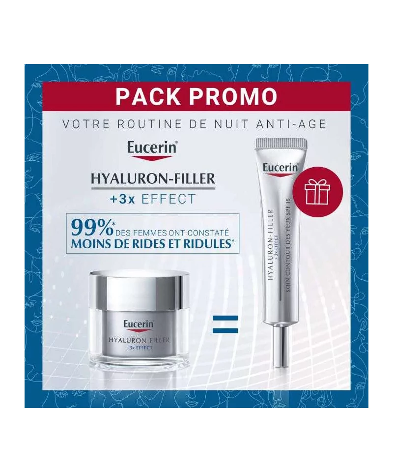 EUCERIN HYALURON FILLER *3 EFFECTS SOIN DE NUIT 50 ML + SOIN CONTOUR DES YEUX 15 ML OFFERT