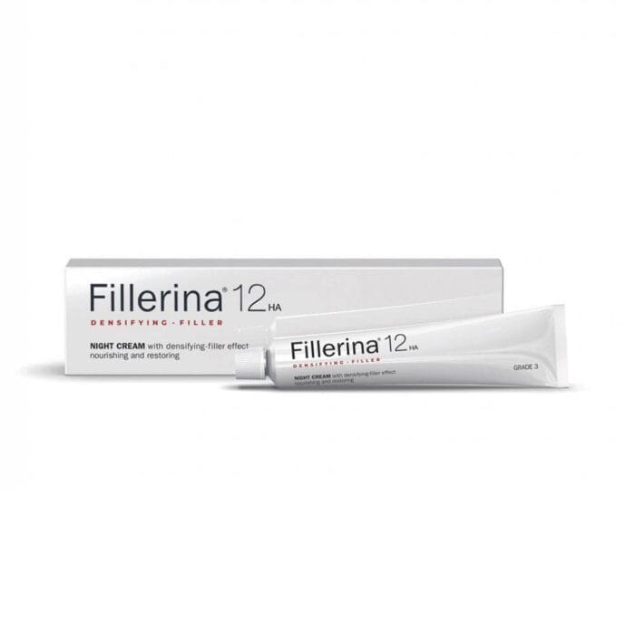 La Fillerina 12HA Densifying-Filler Night Cream Grade 3 50ml est un soin de nuit dermo-cosmétique haute performance conçu pour repulper la peau, lisser les rides naissantes et restaurer la densité cutanée pendant le sommeil. Spécialement adaptée aux peaux présentant les premiers signes visibles de l’âge, cette crème de nuit agit lorsque la peau est la plus réceptive, pour des résultats visibles au réveil.
