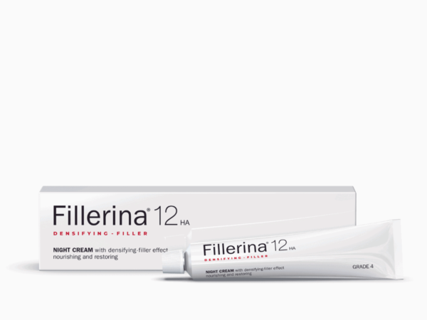 Fillerina 12HA Densifying-Filler Night Cream Grade 4 50ml devient une alternative pratique et simple aux injections cosmétiques contre les signes visibles de l’âge. Dans ce cas, le produit crémeux pénètre facilement la peau pendant votre sommeil, aidant à la nourrir, l’hydrater et surtout la rajeunir. En ce sens, cette crème agit sur les signes de l’âge de grade 4 – rides et ridules profondes sur tout le visage, manque de fermeté dû à un affaissement accentué et besoin de plus de volume sur les pommettes et les lèvres. Cela dit, ce produit procure un effet densifiant-comblant à la peau, lui redonnant toute sa fermeté, sa tonicité et une peau rajeunie. En même temps, le matin vous vous réveillez avec une peau plus éclatante ainsi qu’un effet repulpé.DescriptionFillerina 12HA Densifying-Filler Night Cream Grade 4 50ml devient une alternative pratique et simple aux injections cosmétiques contre les signes visibles de l’âge. Dans ce cas, le produit crémeux pénètre facilement la peau pendant votre sommeil, aidant à la nourrir, l’hydrater et surtout la rajeunir. En ce sens, cette crème agit sur les signes de l’âge de grade 4 – rides et ridules profondes sur tout le visage, manque de fermeté dû à un affaissement accentué et besoin de plus de volume sur les pommettes et les lèvres. Cela dit, ce produit procure un effet densifiant-comblant à la peau, lui redonnant toute sa fermeté, sa tonicité et une peau rajeunie. En même temps, le matin vous vous réveillez avec une peau plus éclatante ainsi qu’un effet repulpé.Toute la gamme Fillerina a une composition riche en propriétés rajeunissantes adaptée à tous les types de peaux, même les plus sensibles. Plus précisément, cette crème de nuit est enrichie de 12 acides hyaluroniques de poids moléculaires différents, de trois types de collagène et de deux types d’élastine. A commencer par l’effet comblant de ce produit, la star principale est l’acide hyaluronique. Fondamentalement, cet ingrédient pénètre les différentes couches de la peau du visage, exerçant ainsi l’action de comblement et augmentant le volume des tissus. À leur tour, les rides et ridules plus profondes sont facilement comblées et l’apparition de nouvelles est également évitée. De plus, l’action densifiante de cette crème implique la présence de collagène et d’élastine. En pénétrant également facilement dans la peau, ils augmentent la densité de sa matrice extracellulaire et améliorent ainsi son effet de comblement. De plus, la perte d’élasticité et de tonicité de la peau est compensée en lui donnant un aspect beaucoup plus ferme.Cette crème de nuit possède également une technologie transdermique brevetée. À son tour, cela repose sur la création d’ingrédients actifs avec différents poids moléculaires, du plus bas au plus élevé. Autrement dit, la pénétration des ingrédients est ainsi plus rapide et assez efficace, de même que les actions anti-âge de cette crème deviennent plus intenses et instantanées. Au total, cette crème de nuit régénère et repulpe la peau en ayant un effet comblant sur les rides et ridules d’expression, un effet lifting sur les traits du visage et un effet volumateur sur les pommettes et les lèvres.Comment utiliserAppliquez une petite quantité de Fillerina 12HA Densifying-Filler Night Cream Grade 4 50ml quotidiennement le soir sur le visage et le cou nettoyés, en facilitant son absorption par un massage doux. Il peut être utilisé seul ou avec d’autres produits de la gamme Fillerina.
