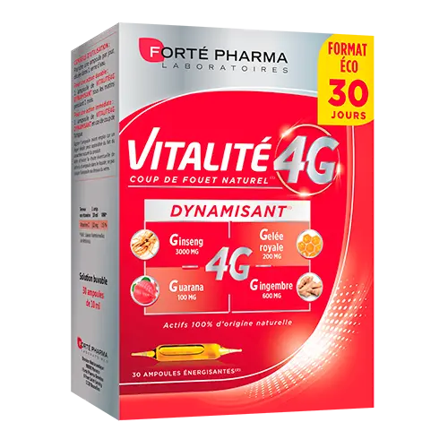 FORTE PHARMA VITALITE 4G Défenses est un complément alimentaire destiné aux personnes qui souhaitent faire le plein de vitalité,