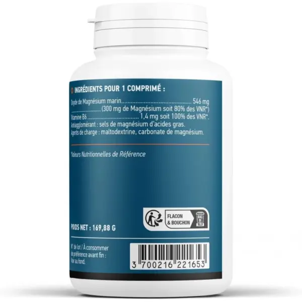 Équilibre du système nerveux – Anti-fatigueUne source naturelle et marine de magnésium pour la détente, fortifier le système nerveuxUn apport en magnésium est particulièrement recommandé en cas de fatigue intellectuelle passagère, gênes liées aux désagréments prémenstruels, fragilité osseuse – notamment chez les femmes ménopausées-, crampes, fourmillements et contractions musculaires, stress passager.DescriptionUn apport en magnésium est particulièrement recommandé en cas de fatigue intellectuelle passagère, gênes liées aux désagréments prémenstruels, fragilité osseuse – notamment chez les femmes ménopausées-, crampes, fourmillements et contractions musculaires.Ingrédients:Magnésium Marin : 545 mg (300 mg de Magnesium correspondent à 100% des AJR)Vitamine B6 : 2 mg qui correspondent à 100% des AJR.Conseil d’utilisation:1 comprimé par jour avec un grand verre d’eau au cours des repas et dans le cadre d’une alimentation équilibrée.Tenir hors de portée des enfants. Ne pas dépasser la dose journalière recommandée.Pourquoi choisir ?, optez pour PHARMA – & , , leader dans le domaine de la cosmétique, des produits de beauté et des prix abordables.