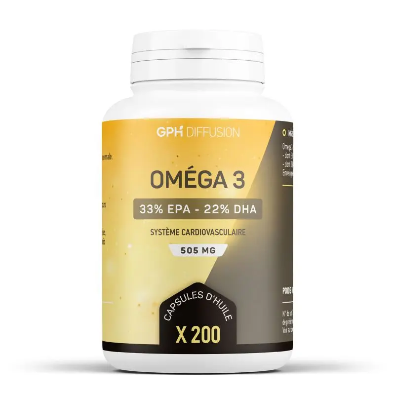 Le complément alimentaire GPH DIFFUSION OMEGA 3 100 CAPSULES aide à préserver la bonne santé du système cardiaque et vasculaire, des fonctions cognitives et des lipides sanguins.