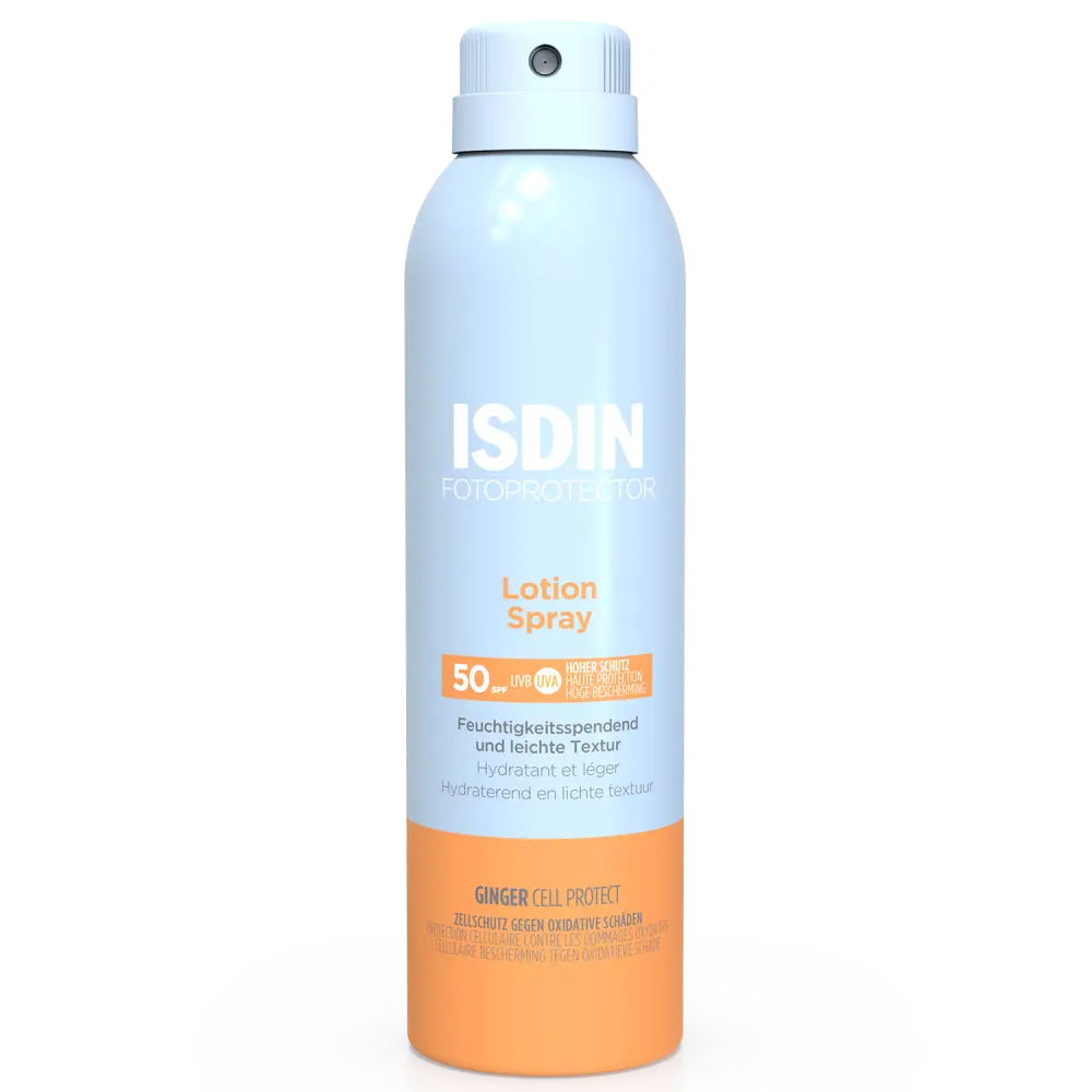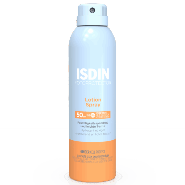 Fotoprotector Transparent Spray Wet Skin SPF50+ du laboratoire ISDIN discount, une très haute protection dans votre en ligne à prix discount, qui protège très efficacement (SPF50+) les peaux normales, mixtes et grasses du soleil même mouillées.