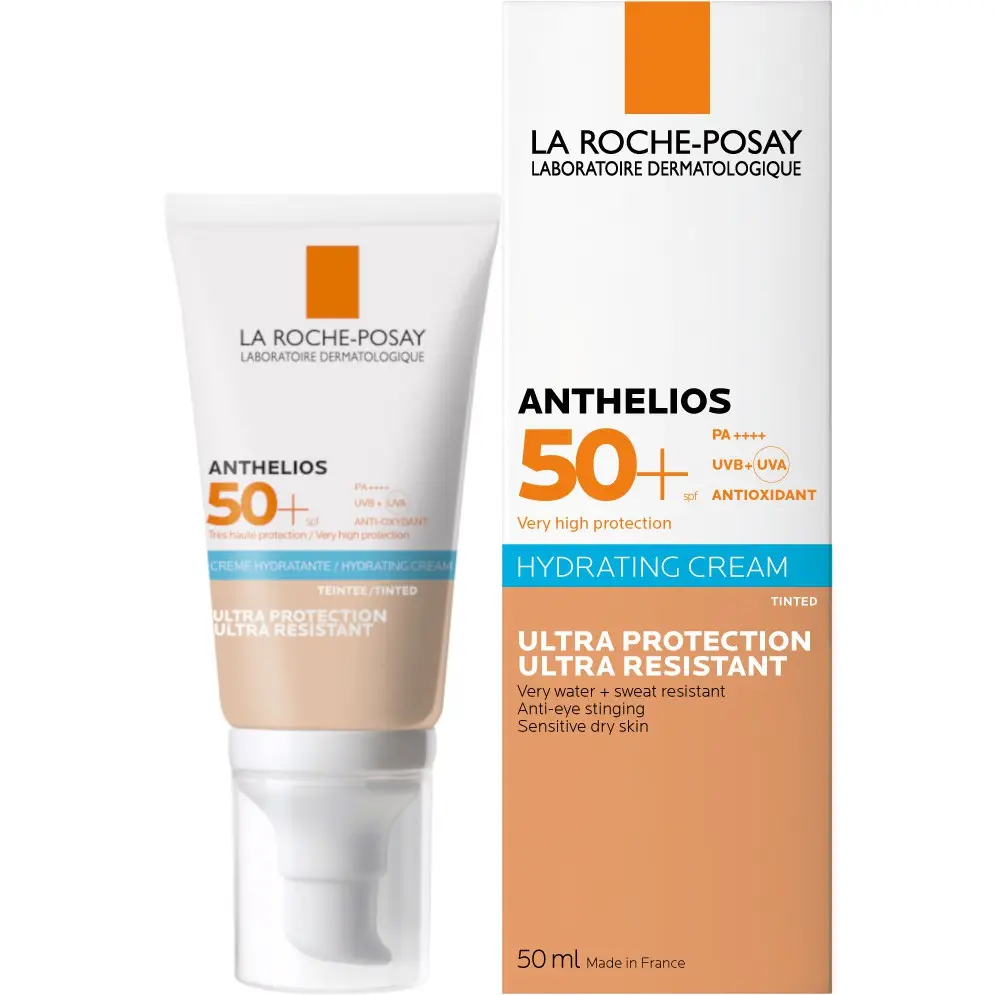 LA ROCHE POSAY ANTHELIOS XL SPF 50+CONFORT/ HYDRATATION CREME TEINTE pour peaux à tendance sèche protège la peau, même contre les dommages cellulaires invisibles liés aux UV .