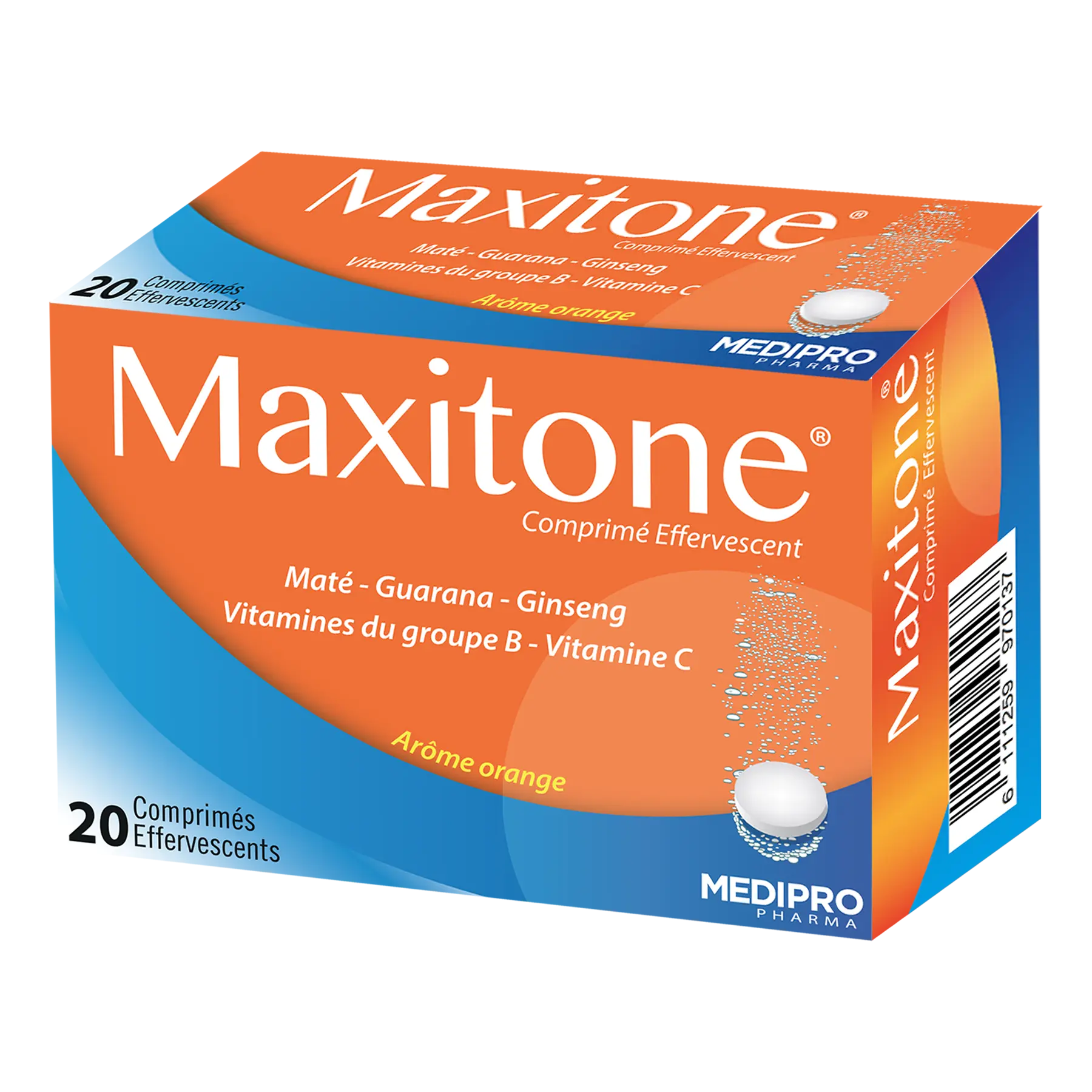 Comprimé effervescent est a base d’un complexe d’actifs naturel fortifiants et dynamisants et de vitamines énergisantes qui contribuent à tonifier l’organisme et à augmenter ses performances. Maxitone est recommandé en cas de fatigue et de baisse de tonus général