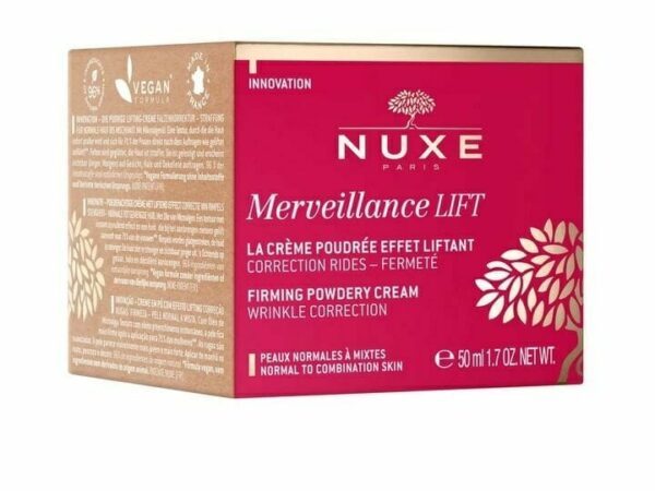Merveillance LIFT – La Crème Poudrée Effet Liftant : révélez une peau aussi forte que vous !nnExpérimentez un résultat anti-âge instantané grâce à une texture comblante inédite.n9 femmes sur 10 sont convaincuesnnNUXE MERVEILLANCE LA CREME POUDRE EFFET LIFTANR 50ML