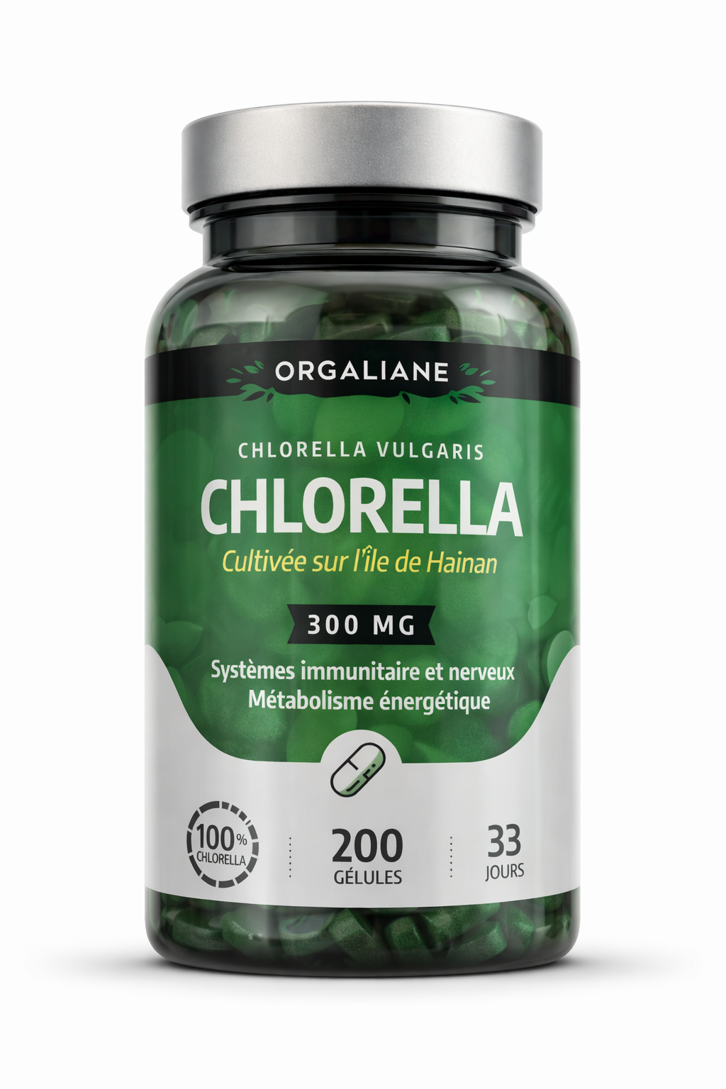 Orgaliane Chlorella 300 mg 200 gélules est un complément alimentaire bio idéal pour la détoxification, la vitalité et le soutien des défenses naturelles.