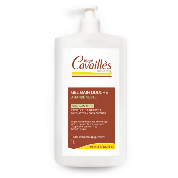 ROGE CAVAILLES GEL SURGRAS ACTIF BAIN DOUCHE AMANDE VERTE Le Gel Bain Douche peaux sensibles à l’Amande Verte est enrichi en Surgras actif pour nettoyer les peaux délicates et sensibles de toute la famille sous la douche ou dans le bain