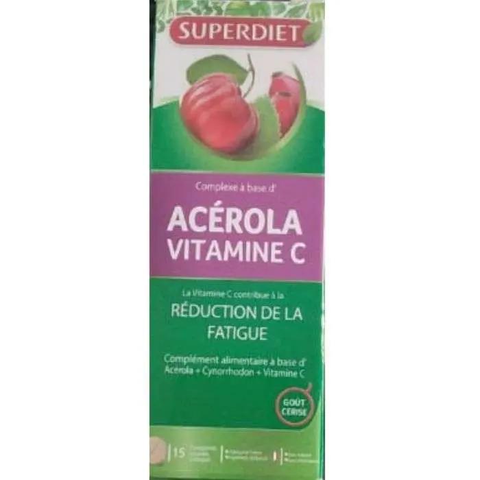 L’Acérola, encore appelée cerise du Brésil, et le Cynorrhodon, fruit rouge et pulpeux de l’églantier, entrant dans la composition de cette spécialité, ont été sélectionnés par les Laboratoires Super Diet pour leur teneur en vitamine C qui aide à réduire la fatigue.