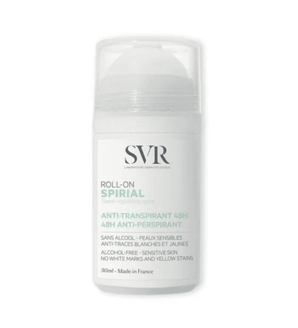 Déodorant anti-transpirant intense 48H* SANS PARFUM*Test scientifiqueCaractéristiques SVR SPIRIAL ROLL ON 50ML:SVR SPIRIAL ROLL ON 50ML est disponible dans votre en ligne .Toutes les peaux même les plus sensibles. Transpiration normale à excessive. Adolescent, adulte. Aisselles.Déodorant à l’efficacité anti-transpirante intense 48H* même en situations extrêmes (sport, stress…). Formulé avec une haute concentration en agents sudo-régulateurs, il régule la transpiration, absorbe l’humidité et lutte contre les mauvaises odeurs dans la plus haute tolérance. Sa texture non collante sèche rapidement et laisse la peau douce sans laisser de traces blanches. Sans parfum.Les Tests scientifiques ont été réalisés sur des VOLONTAIRES CONVAINCUS(1) :• 95% : laisse la peau saine• 90% : ne laisse pas la peau collante(1)Test d’usage 21 jours, 20 volontaires, % de satisfaction.Composition :Une charte de formulation stricte adaptée aux peaux sensibles.Testé sous contrôle dermatologique. Hypoallergénique.HAUTE CONCENTRATION EN ACTIFS SUDO-REGULATEURS POUR UNE ACTION ANTI-TRANSPIRANTE INTENSE 48H* :Chlorohydrate d’aluminium :• La forme la plus tolérée des sels d’aluminium pour réguler durablement la transpiration et absorber l’humidité.Microsphères absorbantes :• Absorbe l’humidité.Triethyl citrate :• Anti-oxydant qui inhibe la formation des mauvaises odeurs.Allantoin :• Apaise les peaux sensibles.La liste des ingrédients peut être soumise à des modifications, nous vous conseillons de vérifier la liste figurant sur le produit acheté.Conseils d’utilisation :Appliquer au quotidien sur peau propre et sèche.