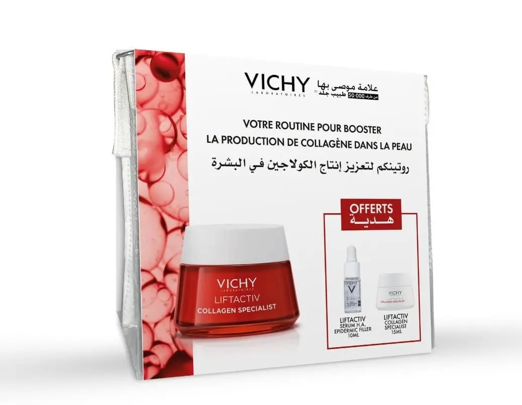 VICHY PACK LIFTACTIV COLLAGEN SPECIALIST 50 ML+Specialist nuit 15ml+serum HA 10 ML+Trousse – offerts🎁